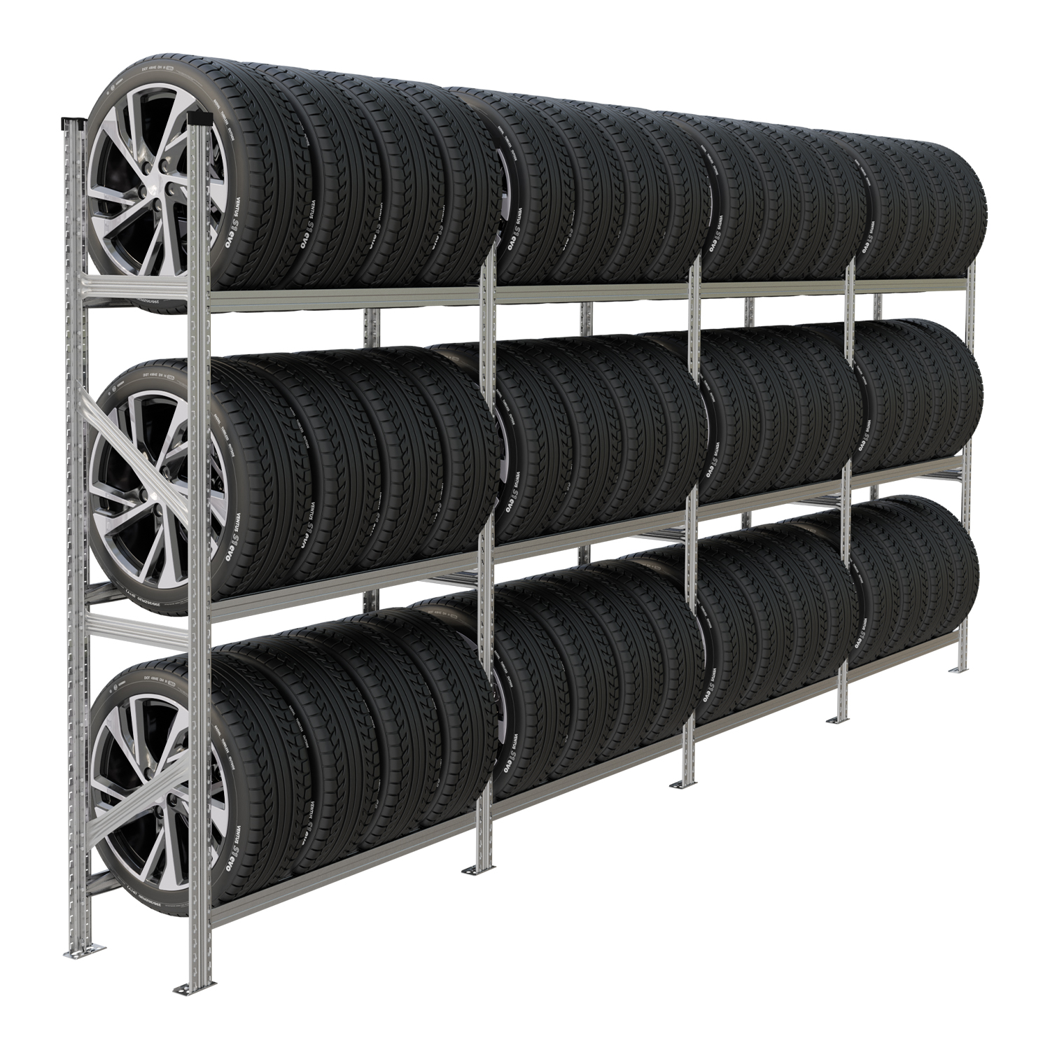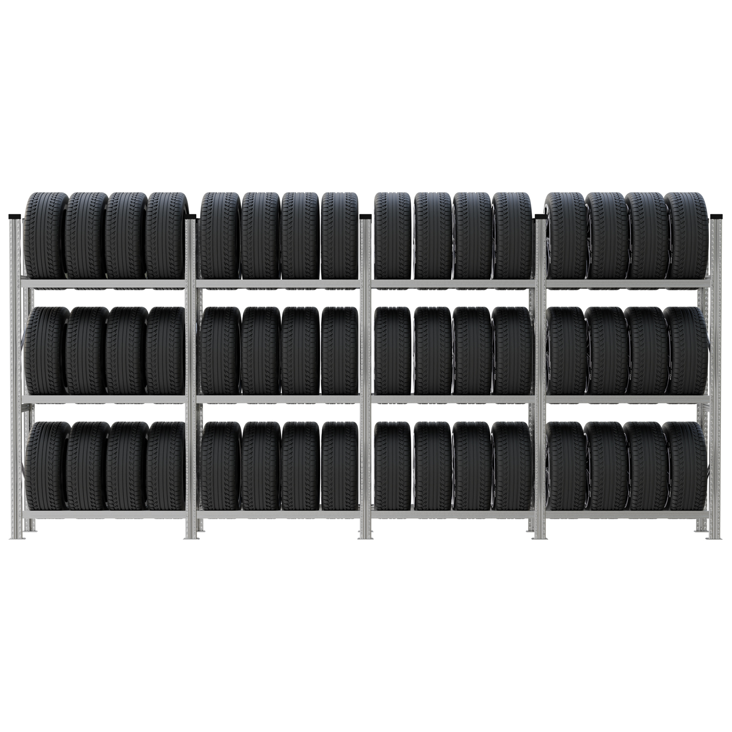 Regał na opony, metalowy, cynkowany. Produkt certyfikowany do łatwego i szybkiego montażu. Regał systemowy pozwalający na rozbudowę regału o kolejny segment lub dodatkową półkę płaską, czy belkę na wieszaki z ubraniami. Możesz dostosować poziom do różnych rozmiarów opon lub wybrać regał dostosowany do składowania Twojego kompletu na jednym poziomie. Możemy też skonfigurować dla Ciebie indywidualną zabudowę, wykorzystując pełne możliwości systemu.