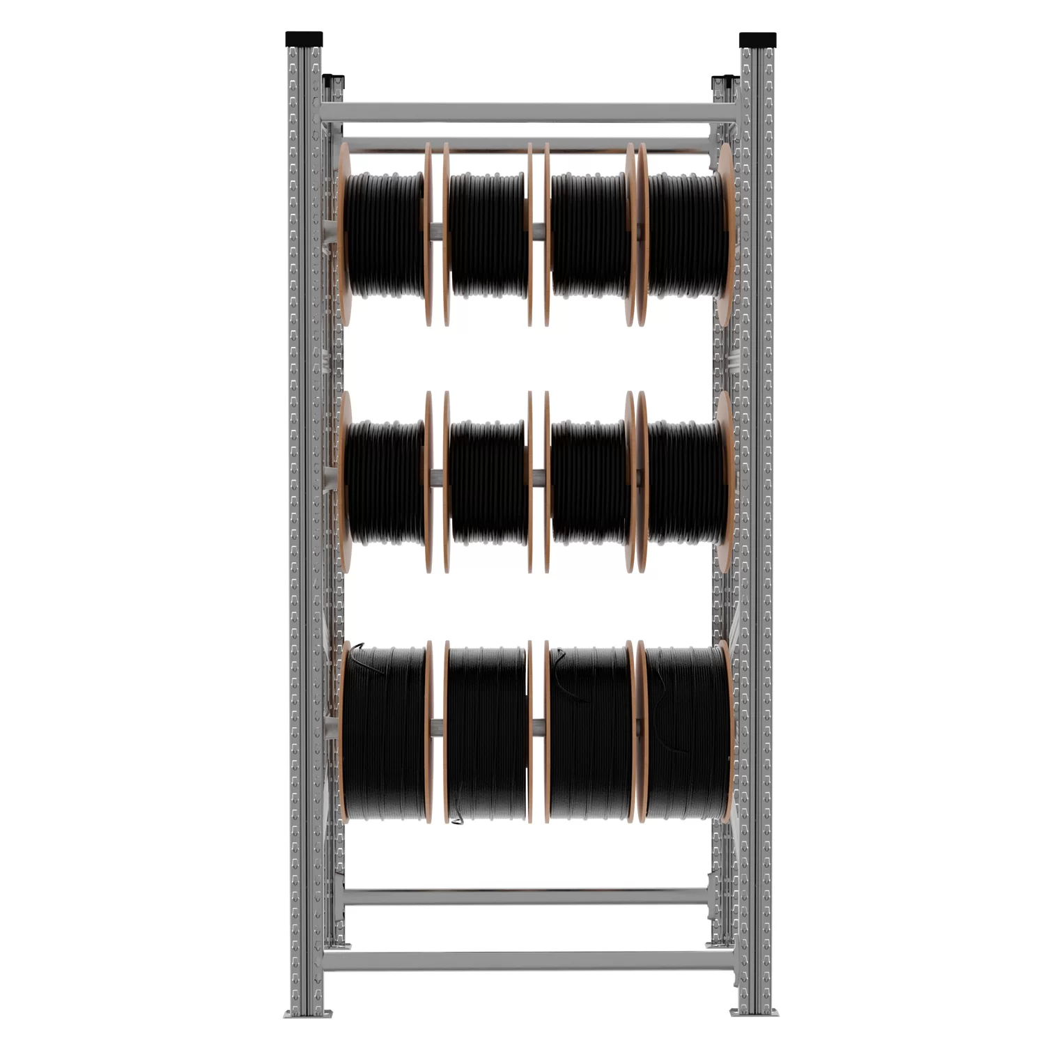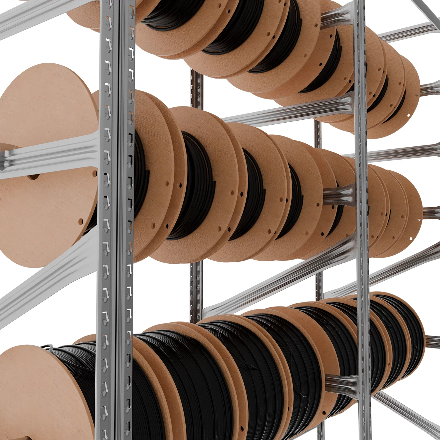 Regał został zaprojektowany w taki sposób, aby pasował do najczęściej spotykanych formatów szpul. Obsługuje modele o średnicy otworu wynoszącej co najmniej 55 mm, a maksymalna średnica zewnętrzna szpuli to 400 mm. Dzięki temu możesz mieć pewność, że Twoje produkty będą odpowiednio przechowywane i łatwo dostępne. Dodatkowo każda z półek została zaprojektowana z myślą o równomiernym rozkładzie obciążenia – co zapewnia nie tylko bezpieczeństwo, ale również długą żywotność całej konstrukcji, nawet przy codziennym intensywnym użytkowaniu.